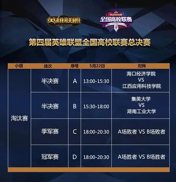 相关介绍:《英雄联盟》全国高校联赛是由官方主办的针对高校学子的校园专属赛事,该赛事以校园学年制(每年9月至次年5月)为一个周期,高校战队需要经过海选赛、校间决赛、省决赛、南北区域赛,最终进入全国总决赛。