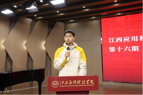 第十五期大骨班优秀学员代表汪俊杰发言,他分享了一年以来在“应科之星”大学生骨干培训班的收获。他感言,通过课程和实践锻炼等行之有效的方式,提高了自己的思想政治素质、政策理论水平、创新能力、实践能力,进一步坚定跟党走中国特色社会主义道路的信念,逐步成长为中国特色社会主义事业的合格建设者和可靠接班人。