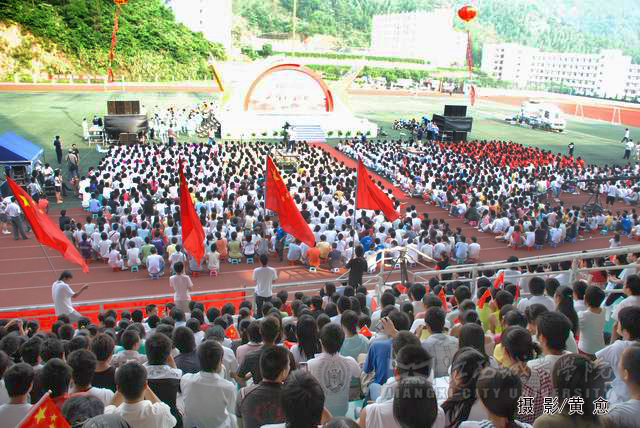 汪书记为红歌会致辞,他首先代表我校师生对歌唱家以及电视台的工作人员表示热烈的欢迎和衷心的感谢。他说,在救灾中,祖国人民表现出顽强不屈的民族精神和爱国精神。43天后,北京奥运会即将胜利开幕,那激动人心的时刻更是中国人民骄傲与自豪的伟大时刻,民族精神和爱国精神得到了沉淀和升华。希望这些精神能在我校传承和弘扬,磨练同学们的斗志,积极营造良好的校园氛围,为我校的发展贡献力量。最后,他宣布此次红歌会正式开幕。