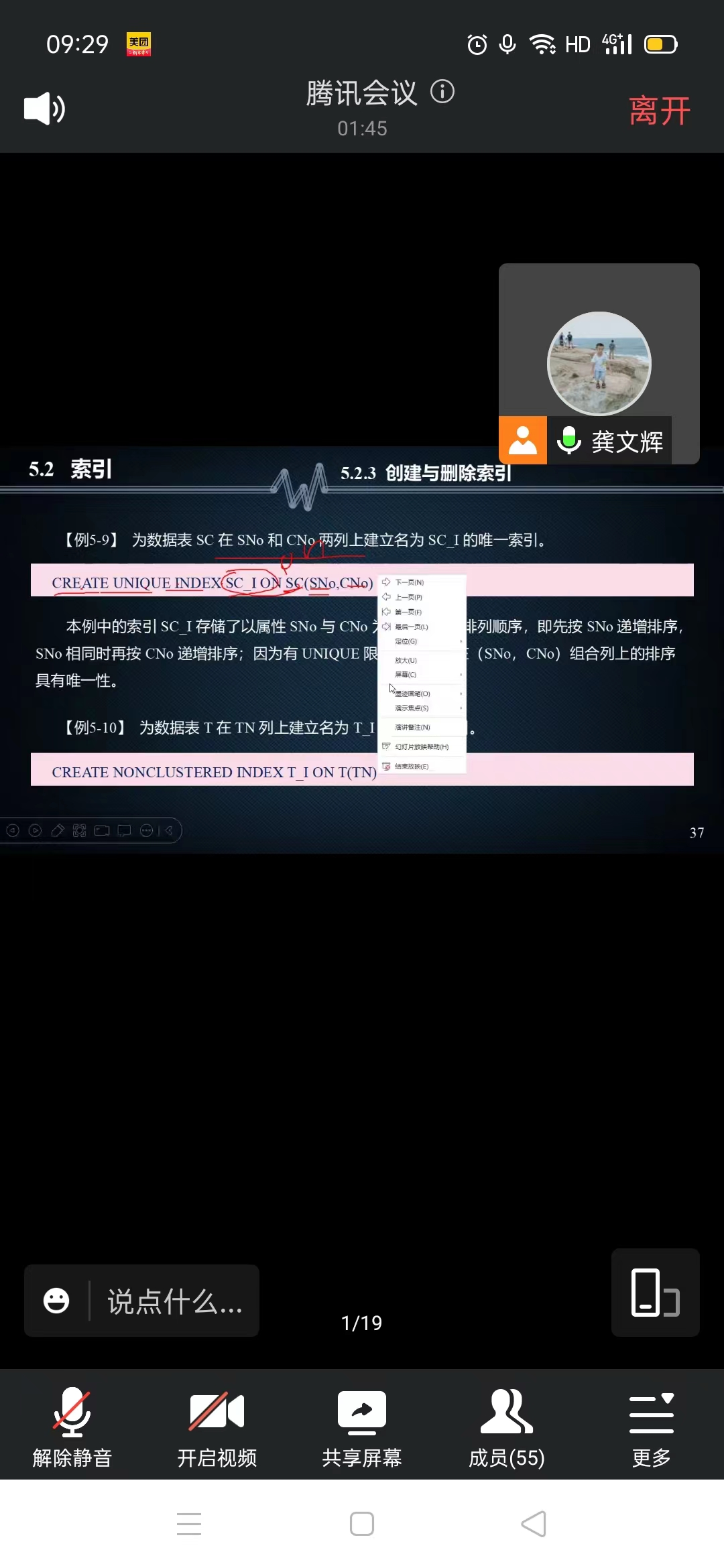 课程采用线上教学,讲述了SQL Server视图和索引两个模块内容,授课过程中,采用理论为主的方式,引导学生进入情境思考问题且对学生进行了分组,学生参与度高,教学准备充分。